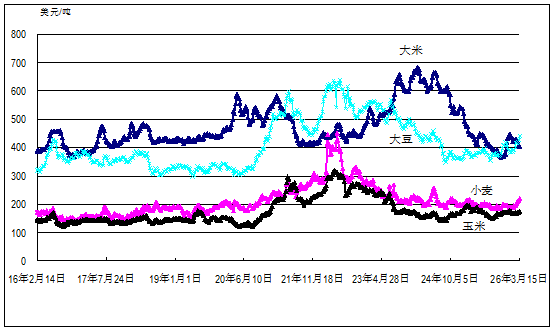 国际大宗农产品周均价格走势图(2016年2月至今)