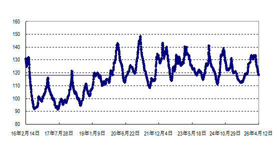 据农业农村部监测,2026年第15周(2026年4月6—12日,下同)“农产品批发价格200指数”为117.60(以2015年为100),比前一周降1.46个点,同比低2.15个点;“‘菜篮子’产品批发价格指数”为118.46(以2015年为100),比前一周降1.70个点,同比低2.46个点。