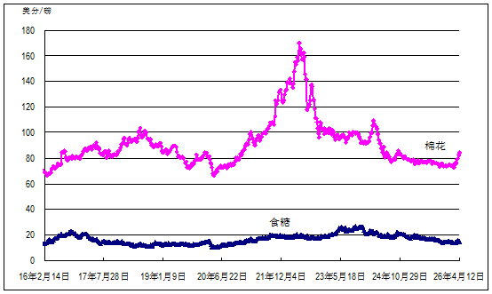 国际大宗农产品周均价格走势图(2016年2月至今)