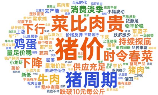 1.猪肉价格继续下跌,牛羊肉价格小幅上涨。猪肉批发市场周均价每公斤14.94元,环比跌2.4%,同比低27.8%;牛肉批发市场周均价每公斤66.62元,环比涨0.6%,同比高8.8%;羊肉批发市场周均价每公斤64.48元,环比涨0.2%,同比高9.5%;白条鸡批发市场周均价每公斤17.09元,环比跌1.1%,同比低2.0%。鸡蛋批发市场周均价每公斤7.70元,环比持平,同比低3.0%。