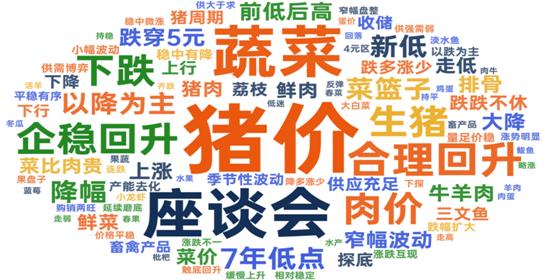 1.猪肉价格继续下跌,鸡蛋价格明显上涨。猪肉批发市场周均价每公斤14.51元,环比跌2.9%,同比低30.1%;牛肉批发市场周均价每公斤66.65元,环比基本持平,同比高8.5%;羊肉批发市场周均价每公斤64.59元,环比涨0.2%,同比高9.0%;白条鸡批发市场周均价每公斤17.17元,环比涨0.5%,同比低1.2%。鸡蛋批发市场周均价每公斤8.10元,环比涨5.2%,同比低0.1%。