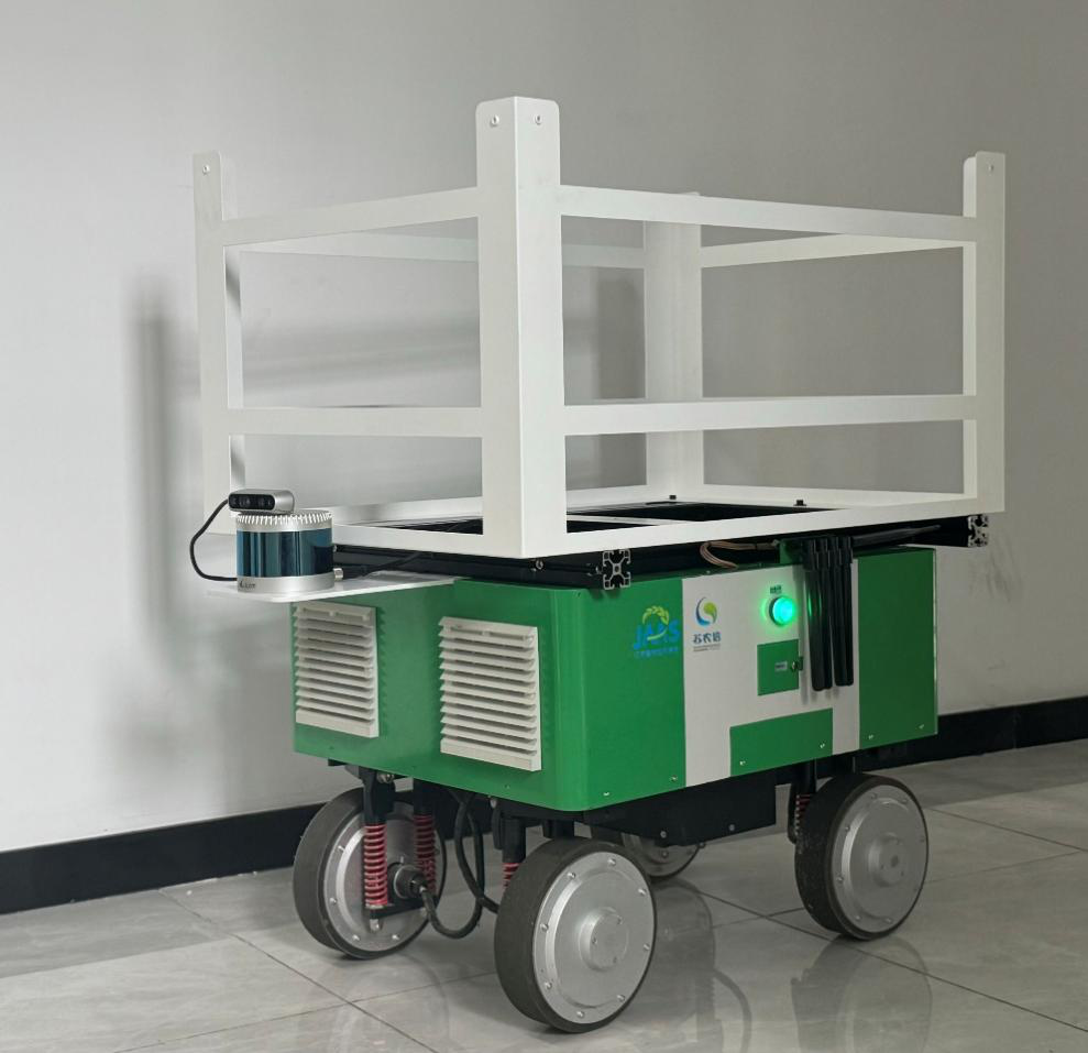 “智农驮手M1”已部署于南京国家农业高新技术产业示范区及江苏省农业科学院智慧农业实验基地,覆盖长距离垄道、高湿环境、人员混行通道及连接坡道等典型设施农业场景。在光照多变、植株参差、坡道起伏、高湿狭窄且障碍随机的环境中,机器人实现超过1000米往返导航,偏差稳定在3厘米以内;能够有效绕行随机放置的工具箱、采收筐及人员干扰;在150公斤满载和小于10°坡道条件下仍保持牵引平稳,果品无损。基地反馈显示,采收高峰期可替代2–3名人工,搬运效率提升约30%,其导航与控制技术已延伸至采摘、巡检机器人。