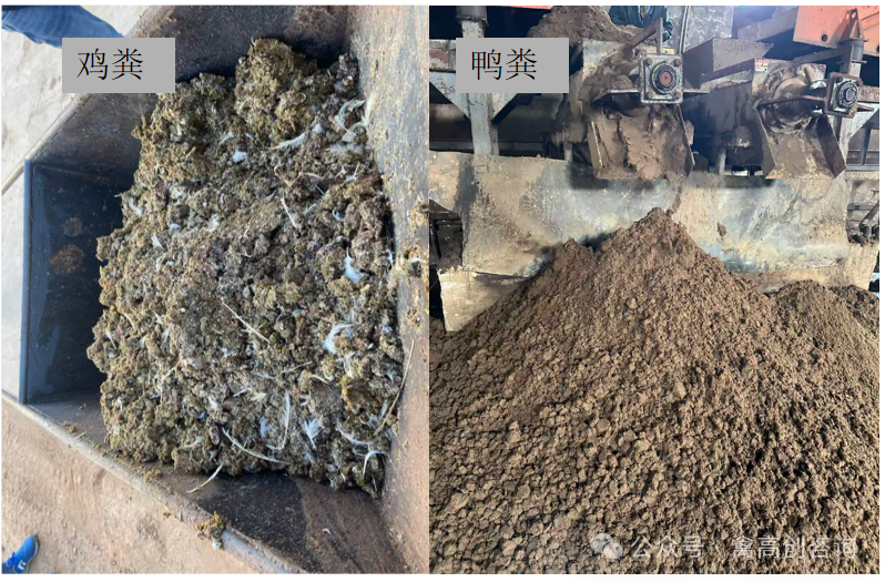鸭粪:含水量高、黏稠难分离,处理复杂、成本高,资源化利用价值有限,不仅难以高效变现,还易引发环境污染,成为困扰行业的一大难题。