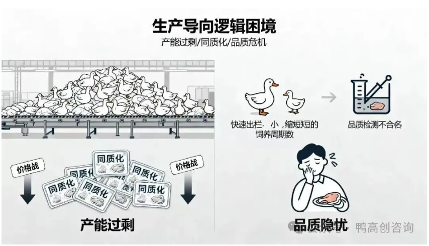 1. 产能过剩与同质化恶性循环:行业曾因期待鸭肉替代猪肉而快速扩张,导致产能过剩。当消费增长未能同步跟进时,同质化竞争只能依靠“价格战”,进一步加剧了“有产量、无利润”的局面。