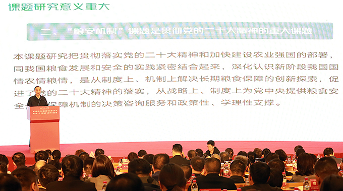 据中国乡村振兴研究院重大课题“粮食安全长期保障机制研究”课题组组长尹成杰介绍,课题不仅立足当前,更着眼长远,通过深化认识新阶段我国国情农情粮情,从制度上、机制上为根本解决粮食保障问题进行创新探索。课题组论述了长期保障粮食安全的十大机制,即粮食安全政治保障机制、粮食安全投入保障机制、粮食安全利益保障机制、粮食安全进出口保障机制、粮食安全储备调节机制、粮食产销区域平衡机制、粮食生产能力保障机制、粮食安全应急保障机制、粮食安全支持保护机制和粮食安全法律保障机制。