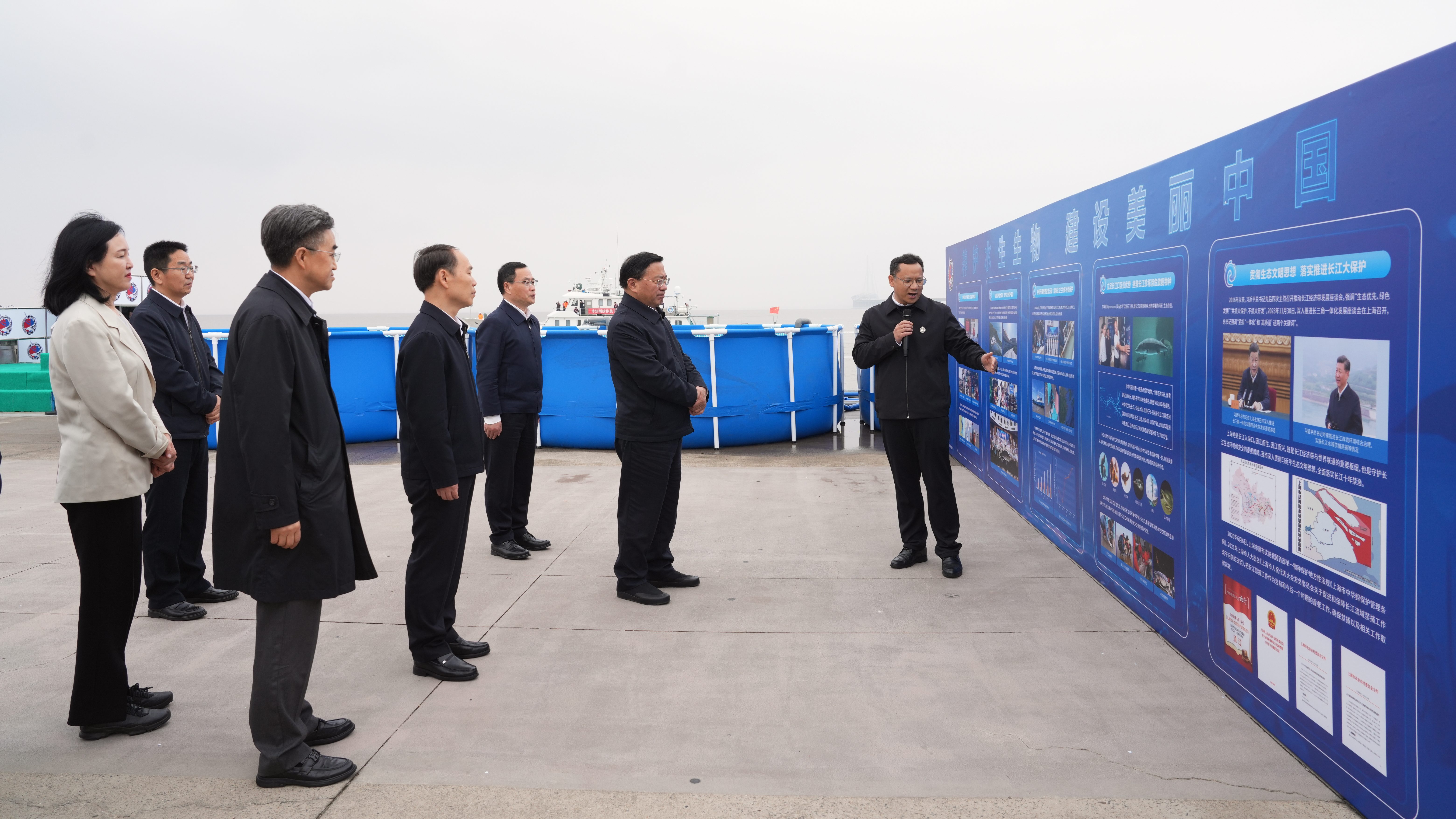 长江禁渔五年来,水生生物多样性持续恢复。韩俊来到崇明岛海监码头,察看中华鲟保护工作情况。他指出,长江口是中华鲟的重要洄游通道,要精心实施中华鲟等旗舰物种拯救行动,提高人工保种群体数量和质量,科学实施规模化放流,开展好中华鲟产卵场修复,努力恢复自然种群。在上海市水生野生动植物保护研究中心,韩俊深入调研长江口水生生物保护工作进展,通过长江禁渔智能管控系统察看禁捕情况。他强调,要综合运用智能化手段,严厉打击非法捕捞,始终保持高压态势。要加强长江珍稀水生生物保育科研,尽快突破关键技术,强化水生生物生境保护,持续推进栖息地修复,系统提升长江水域生态稳定性和承载力。