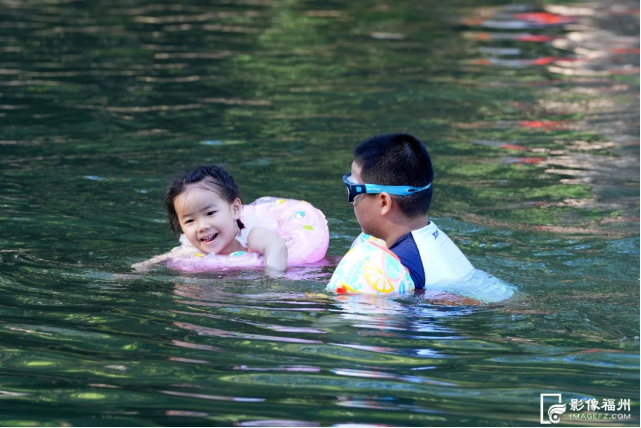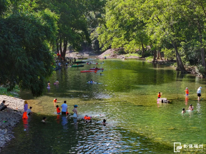 不少游客在永泰莒溪戏水纳凉。包华 摄