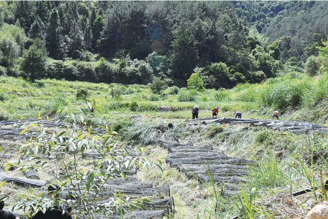从永泰县城出发,在蜿蜒的山路上驾车行驶约40分钟,便可抵达“世外丹云”。走进福建天叶中草药开发有限公司基地,千亩三叶青在阔叶林下蓬勃生长,村民穿梭其间除草施肥。一旁的森林人家研学基地里,孩子们围着孔雀嬉戏,欢声笑语回荡在山谷间。
