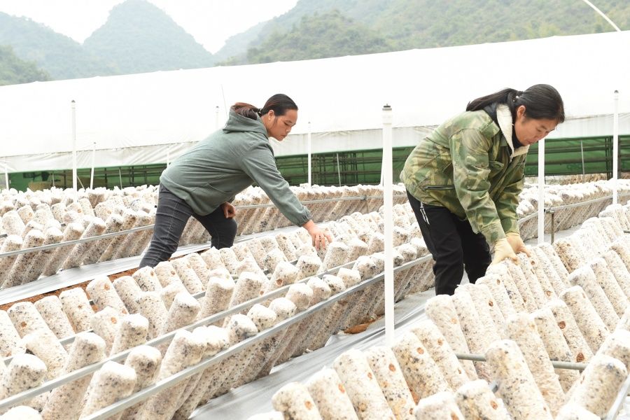 塘红乡马里村弄桃食用菌种养基地是上林县嘉多福生态农业有限公司与明亮镇4个乡镇进行食用菌种养合作当中的一个基地。2021年,上林县嘉多福生态农业有限公司与马里村村“两委”合作进行香菇代种养,公司提供菌棒种、种植技术支持和回收食用菌产品,这不仅解决了马里村种植食用菌的后顾之忧,更为马里村村集体经济增收致富开辟了新路子。