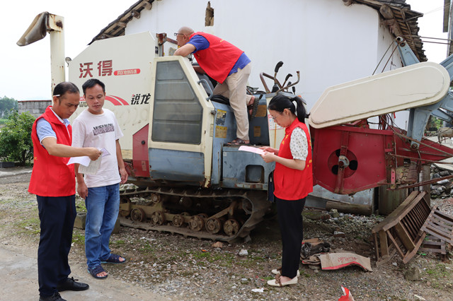 “县农机服务队上门提供农业机械报废更新补贴工作服务,我家达到报废年限的联合收割机,预计可得到1.5万元农机报废更新补贴资金。”来自石龙镇新凤村委的机主钟武辉与邻居高兴地说道,脸上洋溢着幸福的笑容。