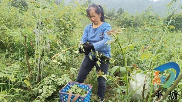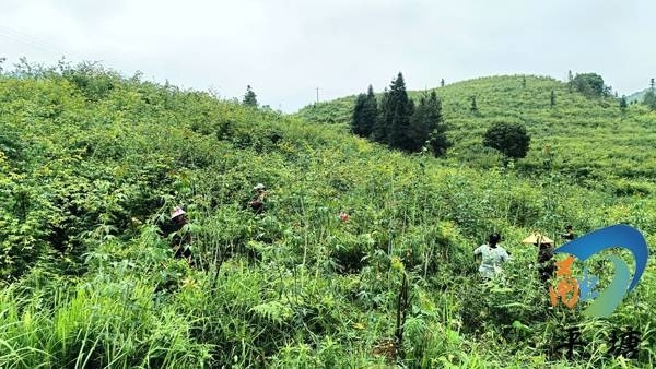 这些天,覆盆子鲜果已下树完毕,务工群众却还在基地里忙碌采摘今年的第一批覆盆子甜叶。