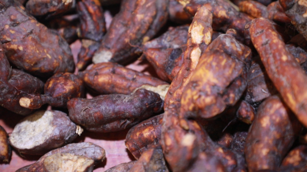 近日,记者走进九潮镇民罗村振兴茯苓加工厂,药香扑鼻。十余名村民正分工有序地对刚收购的何首乌进行加工,有的负责切片,有的负责烘烤,现场一派繁忙景象。