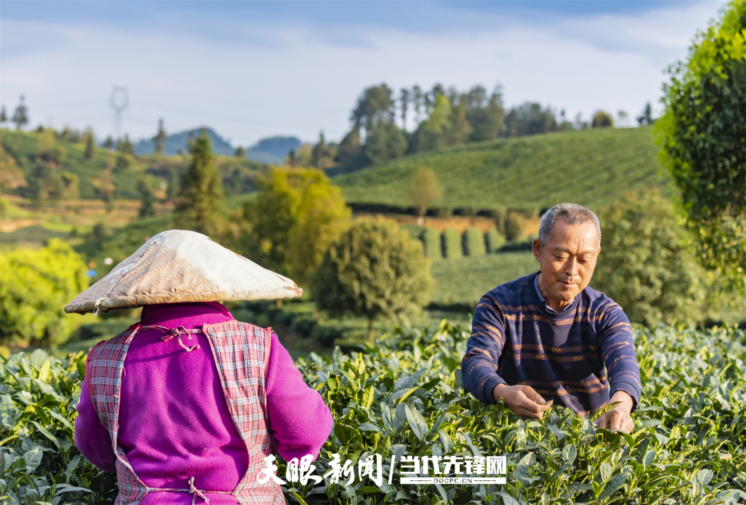 贵州省湄潭县复兴镇随阳山村茶农采茶。湄潭县融媒体中心 罗德雄 摄