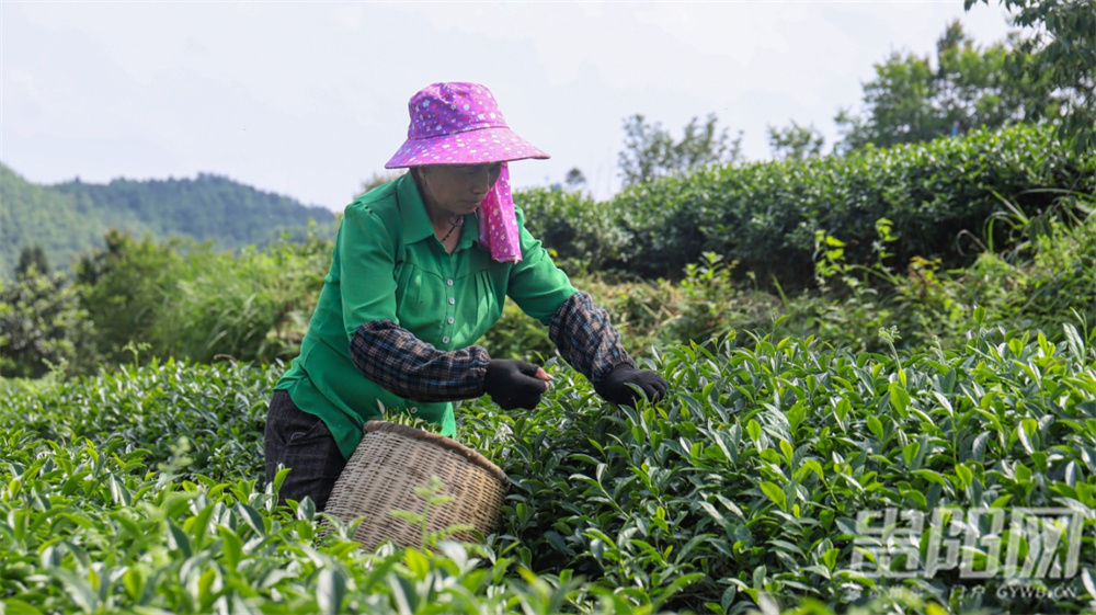 5月21日,雨过天晴,走进贵阳市乌当区百宜镇拐比村天贵茶园,只见茶山上村民们有的腰挂竹篓在采摘夏茶,有的手拿镰刀或背负割草机割草;生产车间内,工人正忙着将刚收购的茶青进行萎凋、揉捻、发酵、干燥并制作成红茶,发往全国各地。