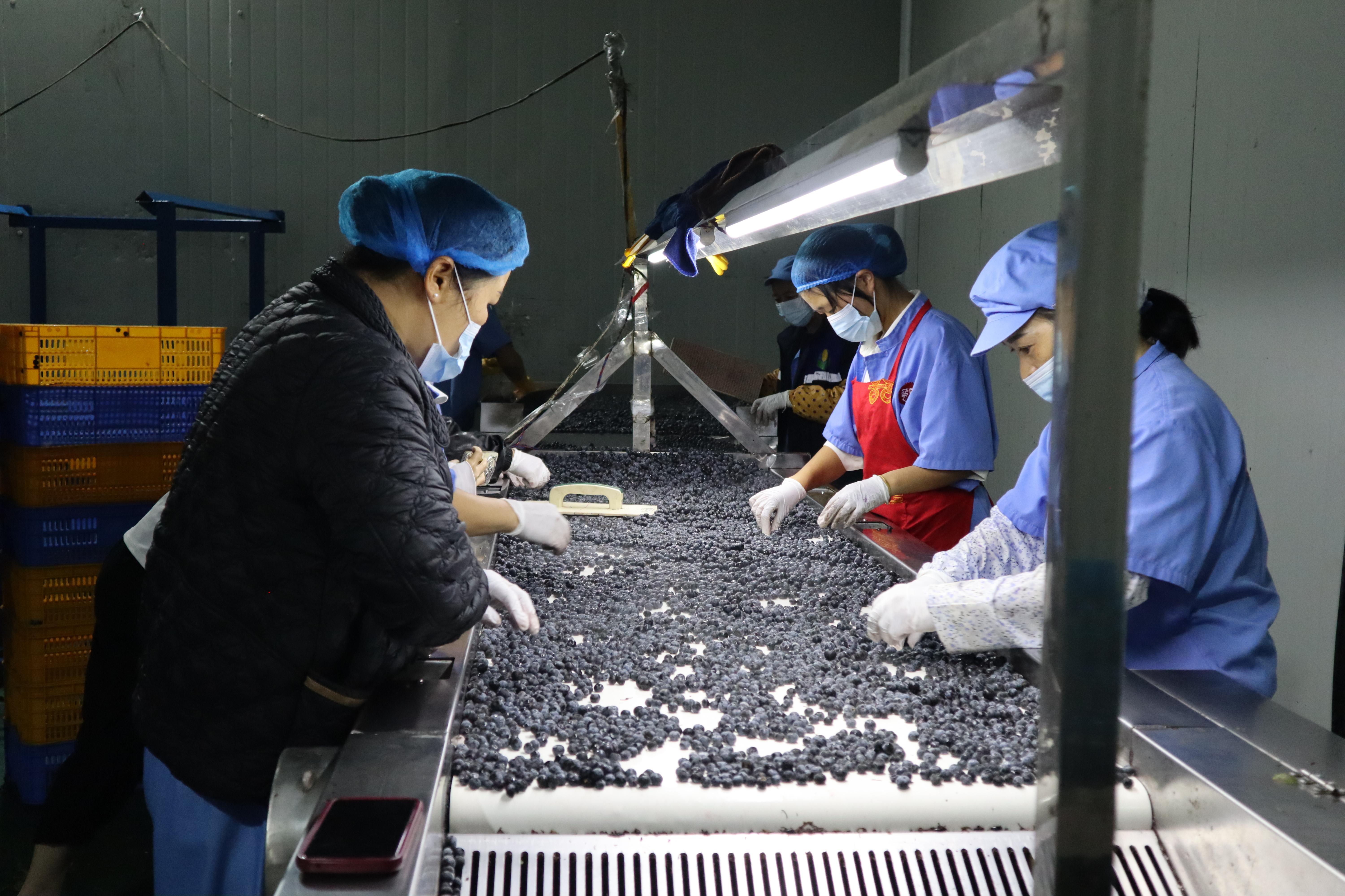 在贵州蓝瑞农业科技有限公司生产车间,蓝莓经分级、清洗、压榨、杀菌等工序,化作浓醇的紫色原浆;隔壁生产线同步生产果酱、果干、酵素、红酒等产品。“我们每天收购15至20吨蓝莓,通过分级销售和精深加工实现效益最大化。”公司总经理周南俊介绍。这家成立于2018年的企业,拥有蓝莓果汁、果干、果酱、红酒生产线,年加工能力达3000余吨,产品通过线上线下结合方式销往全国,去年产值突破2500万元。