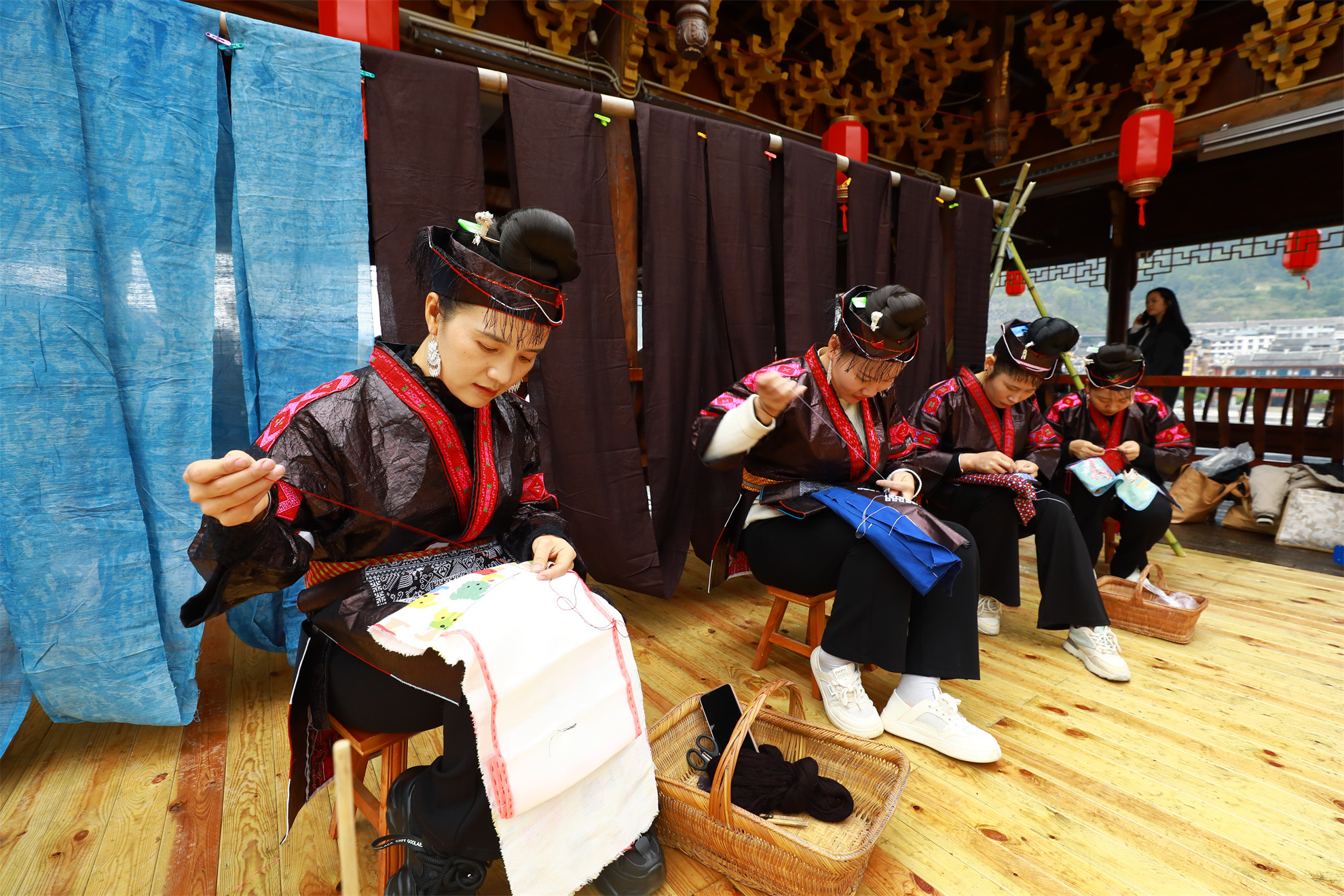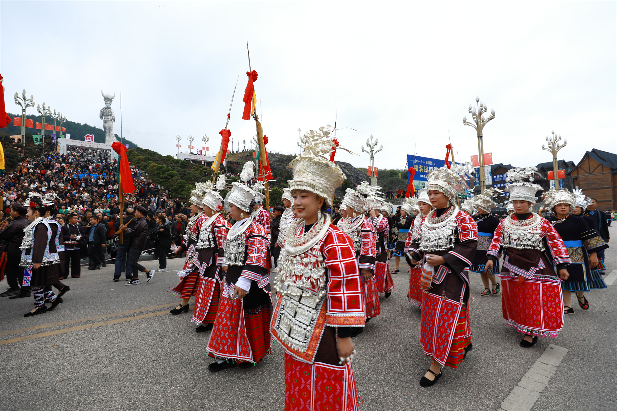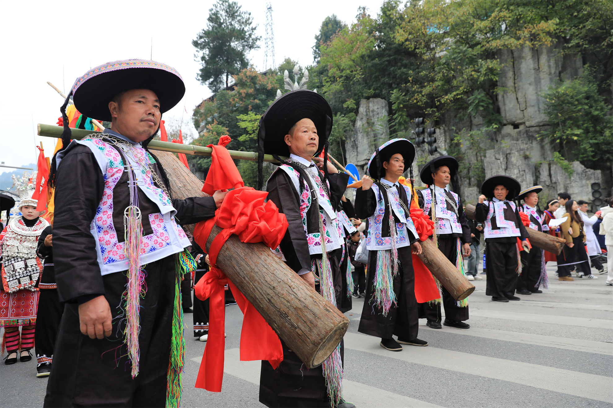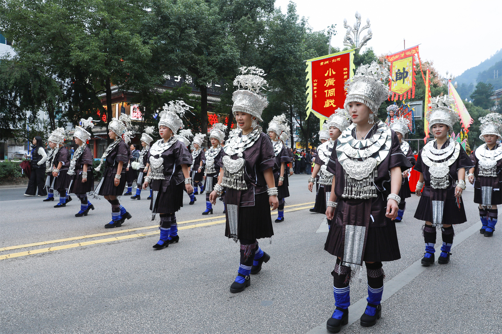 活动期间举行的“2025中国农民丰收节村歌大赛总决赛民族团结大巡游”,以“多彩”和“惊艳”两词拉开序幕。来自黔东南州16个县(市)的1000余名群众,身着民族盛装,组成16支巡游方阵,依次展示剑河县农耕特产、水鼓舞、飞歌等非遗项目及另外15个县(市)的民族特色风采。巡游过程中,苗族刺绣、银饰锻制等非遗手工艺定点展示与巡游展示交相辉映,全力呈现丰收喜悦与民族团结盛况。