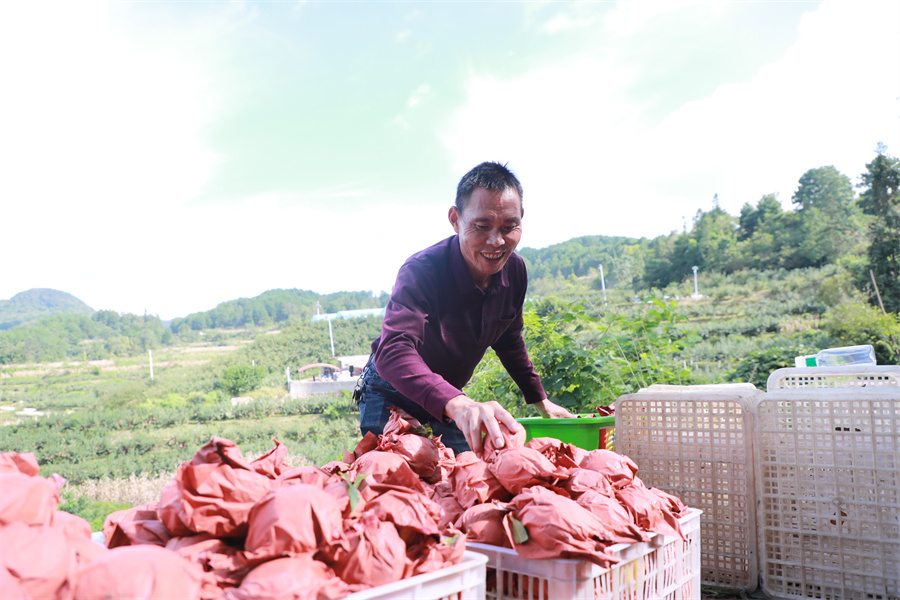 黄桃产业的发展还为村里的村民们创造了长期稳定的就业岗位,从疏花疏果到套袋采摘,再到分级包装,让他们在家门口就能赚到钱。“我是本地的村民,我们夫妻两人都在果园里上班,不仅能照顾家,还有收入。”正在忙碌的村民王庭玉笑着说道。