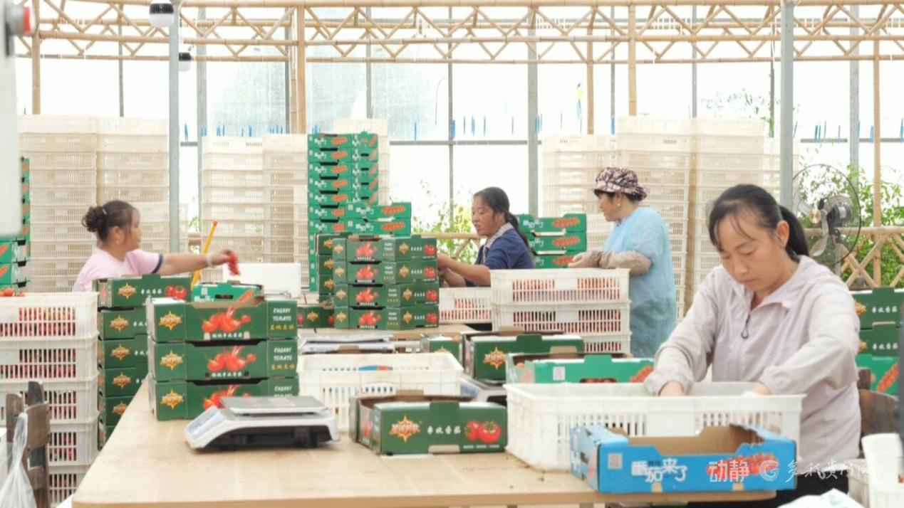 采摘、剪枝、装箱……在贵州省开阳县的串收小番茄种植基地里,一箱箱包装好的小番茄,正准备发往粤港澳大湾区和东南亚的多个国家。