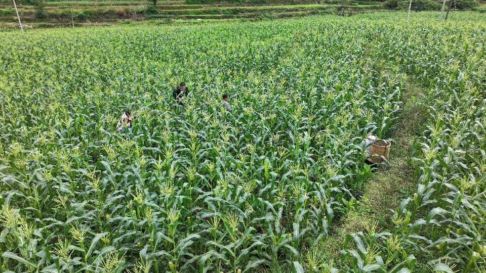 铜仁市德江县,玉米绿浪翻滚。堰塘乡高家湾社区,村民正给抽穗、扬花的秋季鲜食玉米喷洒防虫剂。“烤烟收完就种玉米,除草、施肥,喷洒防虫剂。”村民陈昌慧背着喷雾器,和同伴穿梭于玉米基地里。