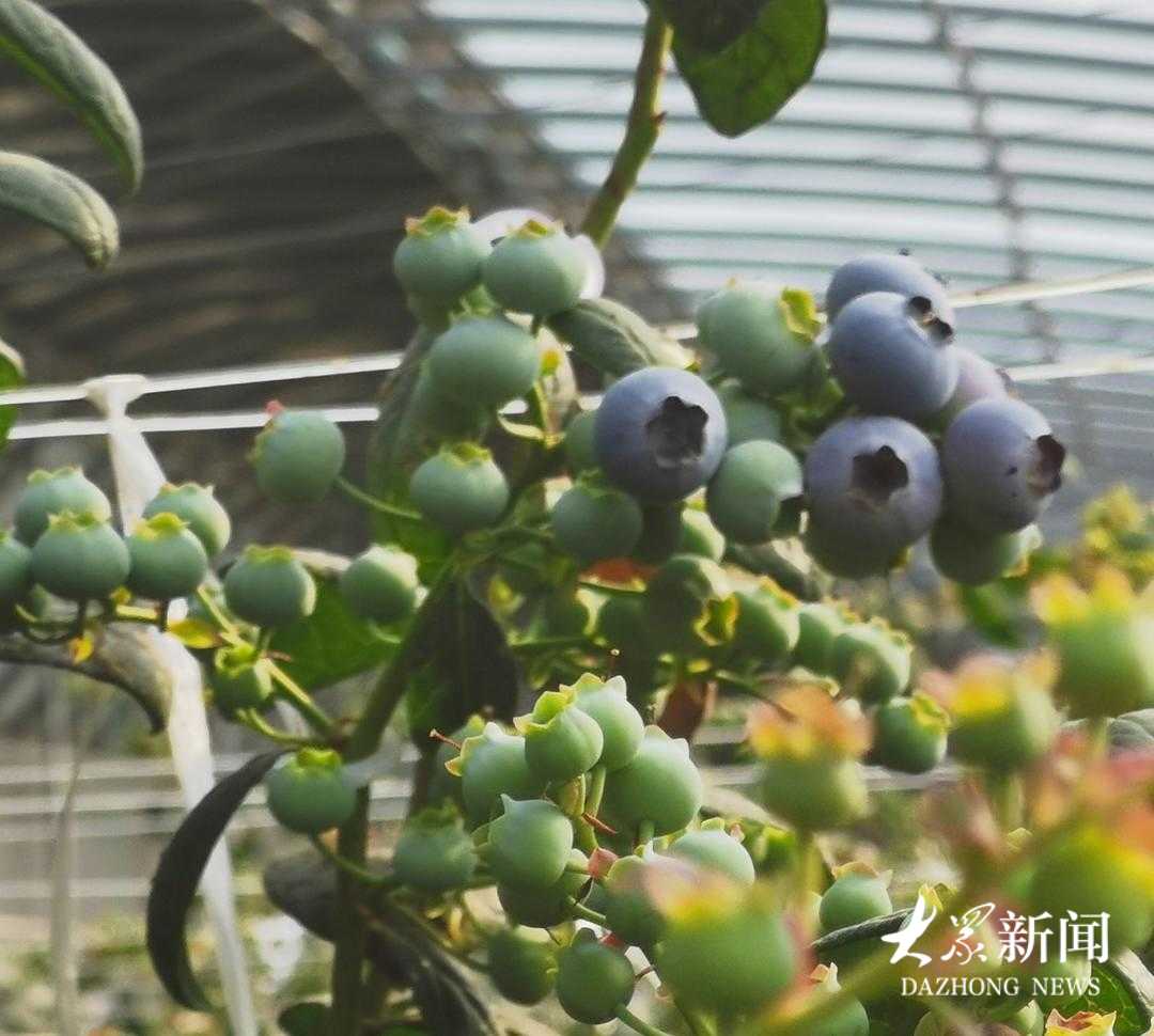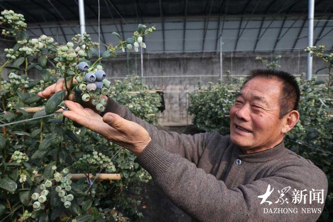 2月5日,在大多数蓝莓植株的顶端,已有三五颗果实变成紫黑色。“3天后,也就是腊月廿一,我们就能采摘下第一批蓝莓,这批蓝莓正好供应春节市场。”张友民说,“因为管理得好,这批成熟的果大多规格在20毫米以上,最大的达到24毫米。”