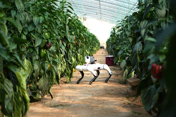 在山东寿光,蔬菜大棚里正上演另一场“科技秀”。一群脚步灵活的机器狗,正沿着田垄灵活穿梭。搭载的高清摄像头与传感器如同“火眼金睛”,精准识别病虫害迹象。巡检结束,数据实时传回后台,AI模型迅速给出种植决策。